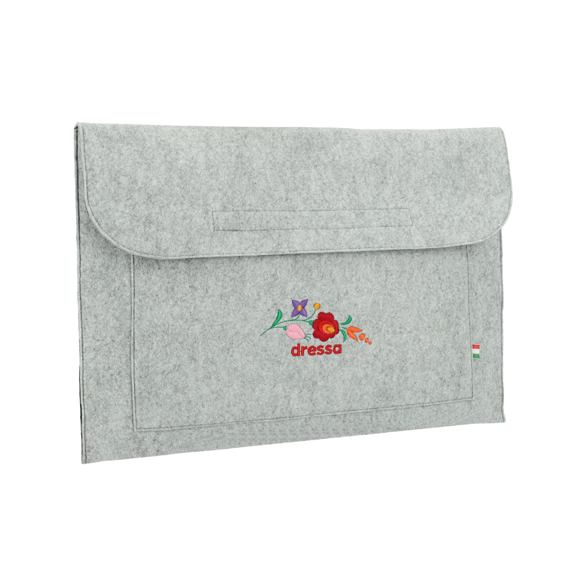 Dressa Bag matyó mintás hímzett filc női laptop tok praktikus és egyben stílusos megoldás a mindennapi munkához és utazáshoz. A 15,6″ méretű laptop részére készült tok könnyű, de mégis tartós filcből készült, amely megvédi a laptopot a karcolásoktól és sérülésektől. A tépőzáras fő rekesz biztonságosan rögzíti a laptopot, míg az első zseb lehetővé teszi az íróeszközök tárolását. Az elegáns szürke szín bármilyen ruhához illik, így lehetőséget ad a stílusos megjelenésre bármilyen élethelyzetben.Tipikusan munkához, egyetemre vagy utazáshoz használják, de akár otthoni használatra is kiváló lehet.