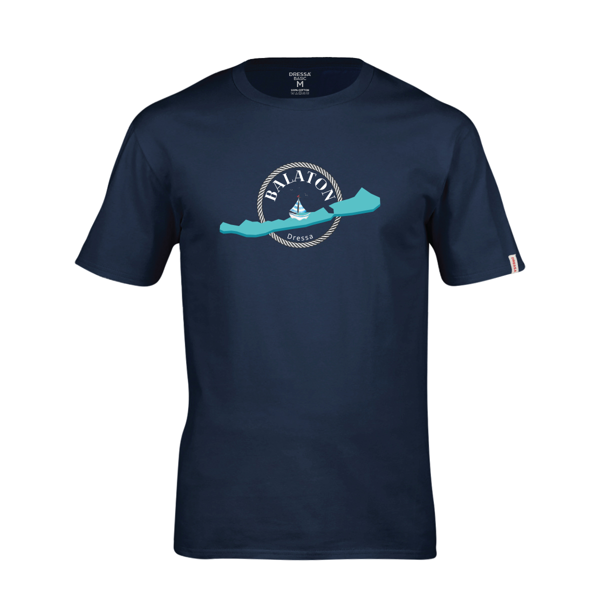 Dressa Balaton mintás nagyméretű környakú rövid ujjú pamut póló – sötétkék színben remek választás lehet egy nyári sétához, szellős, könnyed anyaga miatt kiváló lehet melegebb időben is.