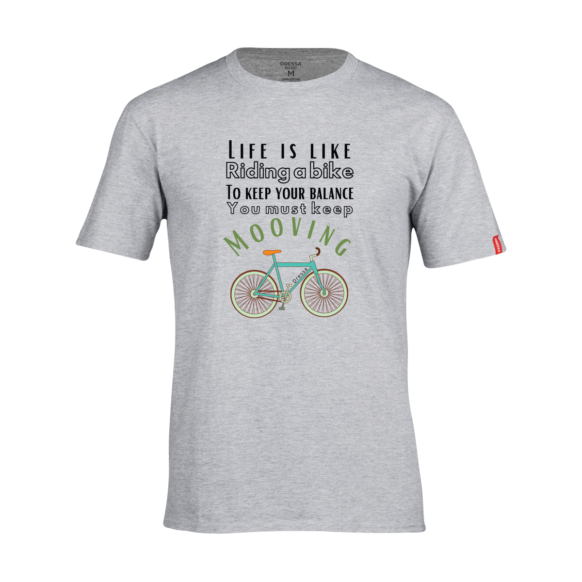 Dressa Bicajos mintás környakú rövid ujjú pamut póló – melírszürke színben a kerékpározás rajongóinak.