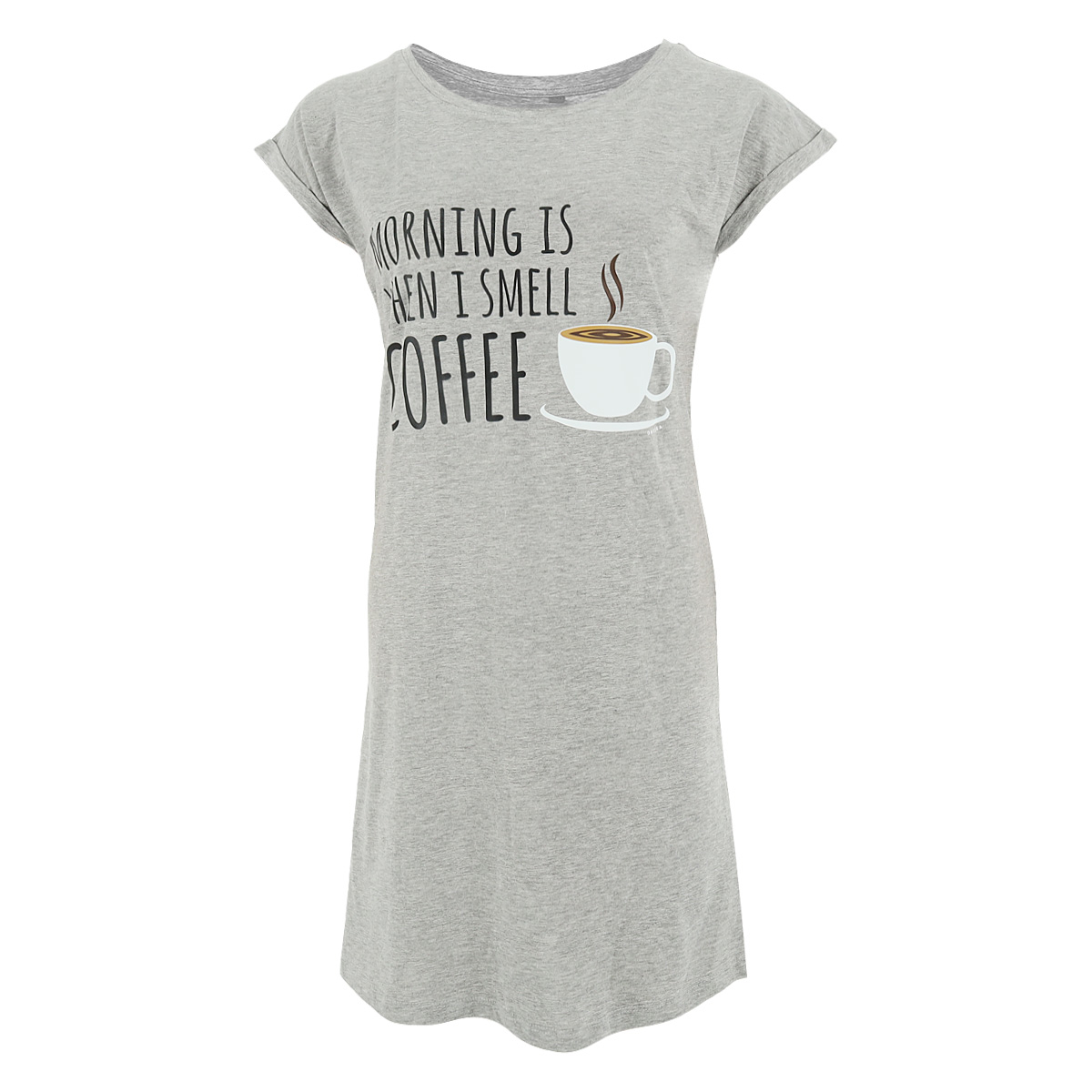 Dressa Coffee mintás pamut pólóruha – melírszürke színben tökéletes viselet lehet hálószobába, vagy strandra. Komfortos szabása és könnyed, szellős anyaga maximális kényelmet ad. Elöl egy trendi minta van rajta, ami fiatalos megjelenést ad. Széles nyakkivágása miatt könnyen lehet belebújni, vagy kibújni belőle. Strandruhaként és hálóruhaként is viselheted.