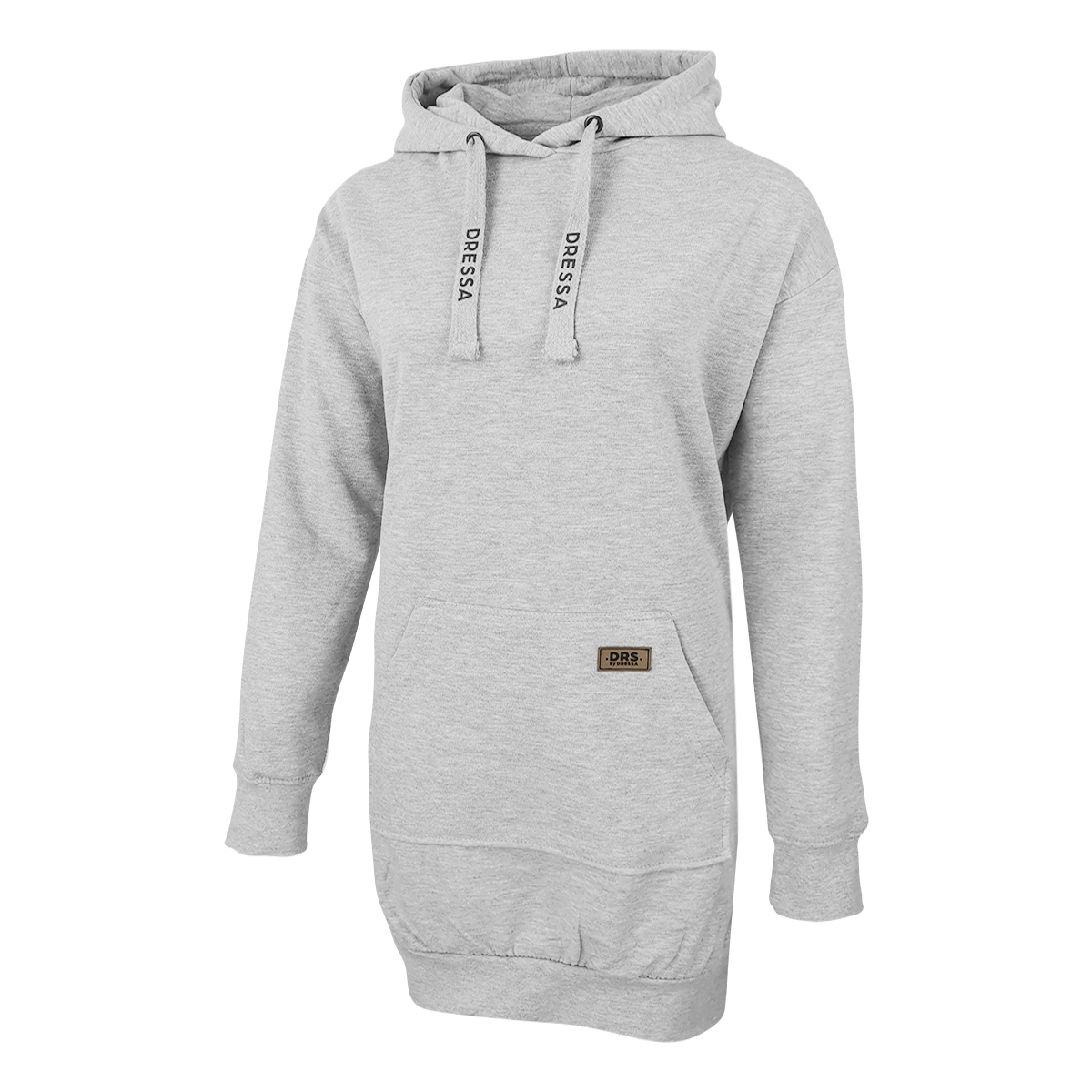 Dressa DRS Casual kenguruzsebes hosszított női pamut kapucnis pulóver – melírszürke