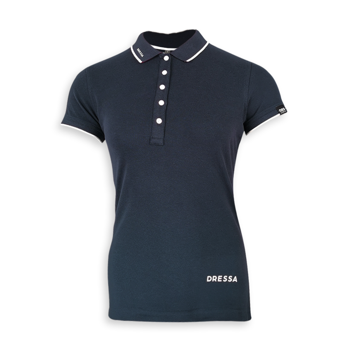 Dressa galléros rövid ujjú pamut női piké póló – sötétkék színben hamar elnyeri a tetszésedet. Ez a kényelmes, 100% fésült piké pamutból készült póló divatos gallérral és kontraszt csíkokkal lett ellátva. A szellős, könnyed anyaga miatt kiváló lehet meleg időben. Légy benne szívdöglesztő mindennap! Öltözz össze a pároddal ugyan is már férfi változatban megtalálható.