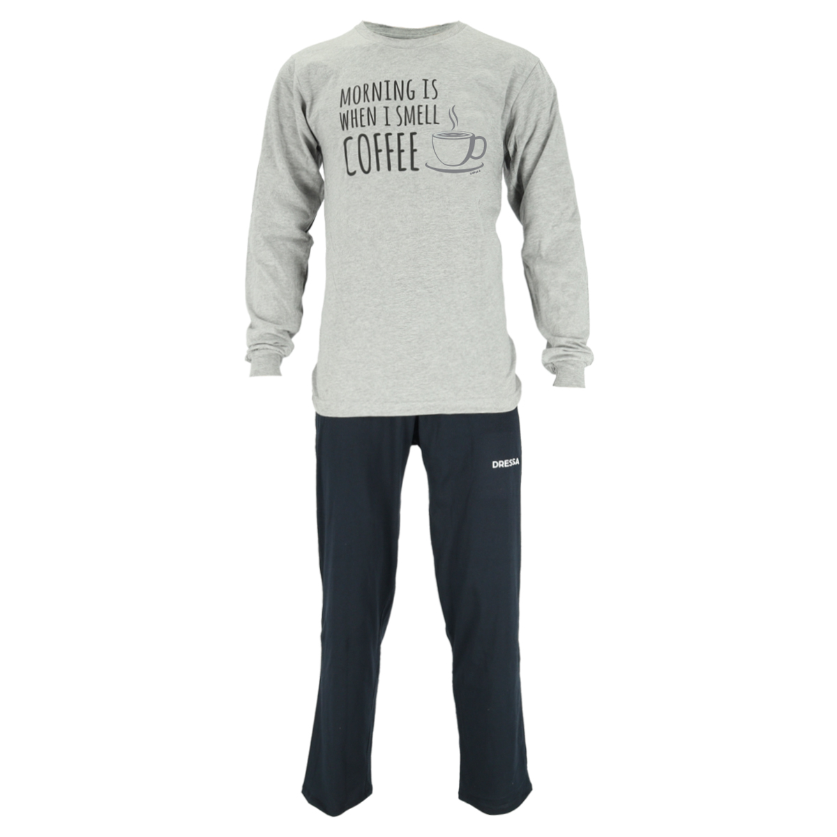 Dressa Home Coffee mintás feliratos hosszú ujjú férfi pamut pizsama – melírszürke