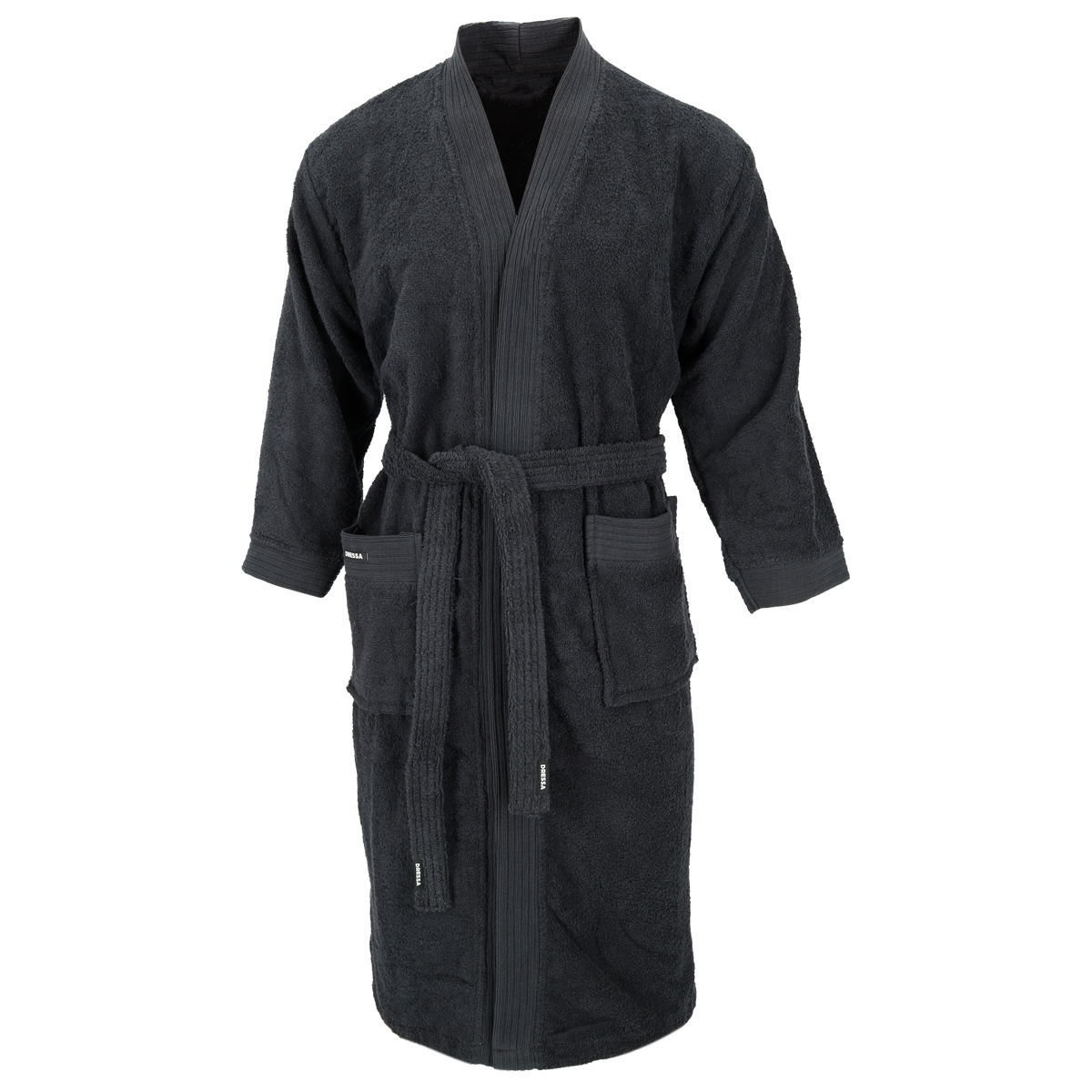 Dressa Home hosszú ujjú frottír fürdőköpeny köntös – fekete színben tökéletes viselet lehet, otthonra, uszodákba, strandra, vagy vízpartokra. Komfortos szabása és frottír anyaga ideálissá teszi a fürdés előtti és utáni használatra. Oldalt praktikus zsebekkel lett ellátva.