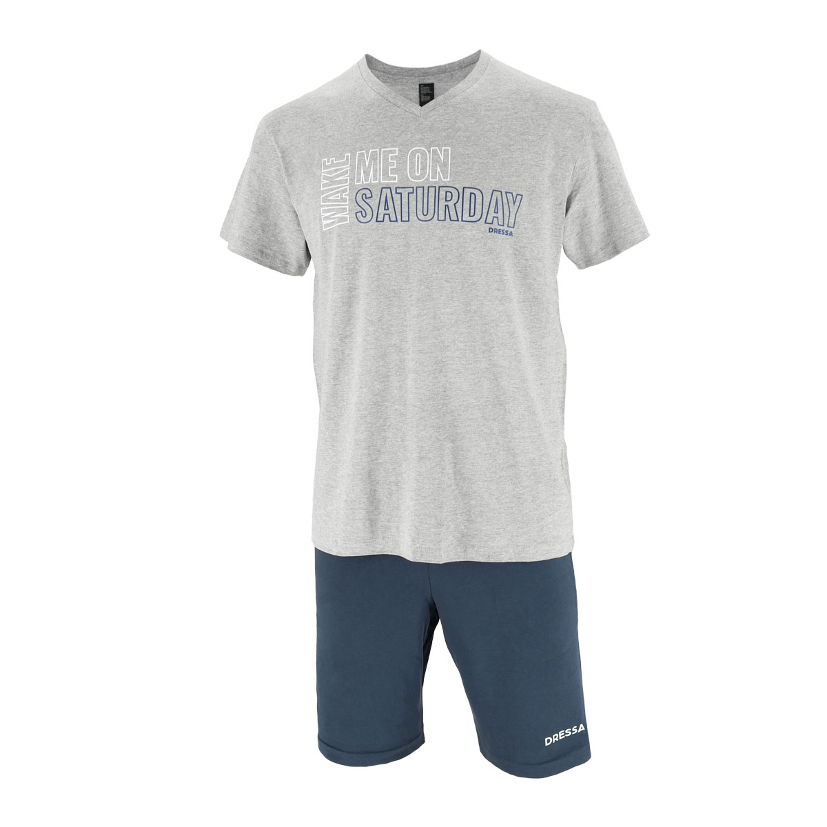Dressa Home Saturday feliratos V nyakú férfi rövidnadrágos pamut pizsama – szürke