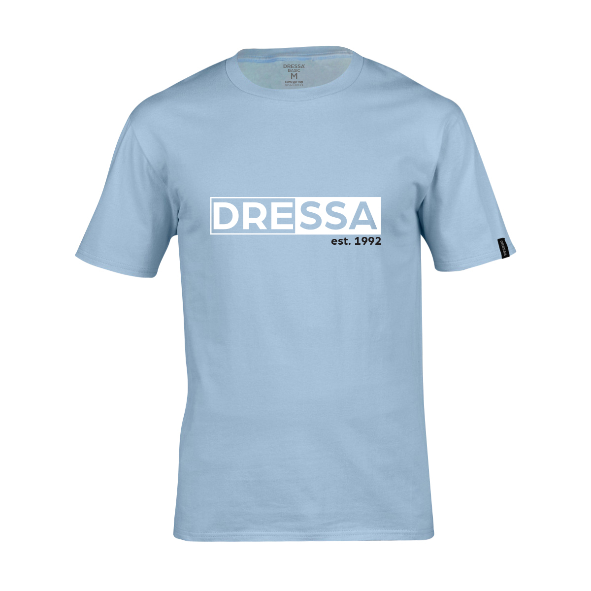 Dressa Mirror feliratos környakú rövid ujjú pamut póló – világoskék