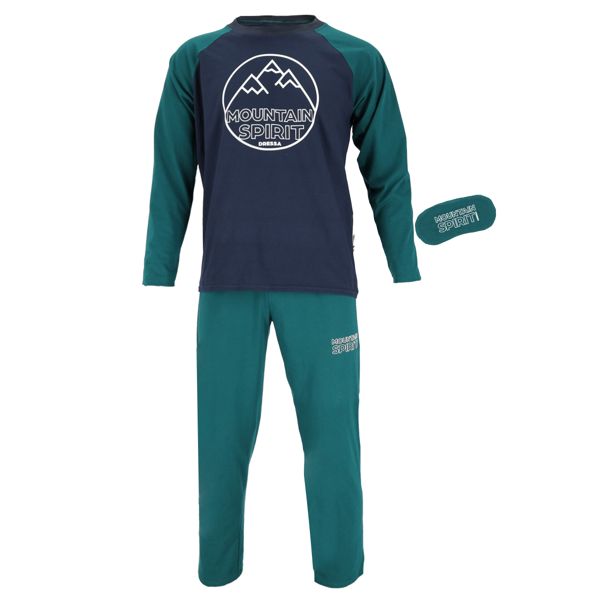 Dressa Mountain Spirit mintás pamut hosszú ujjú férfi pizsama alvómaszkkal – zöld