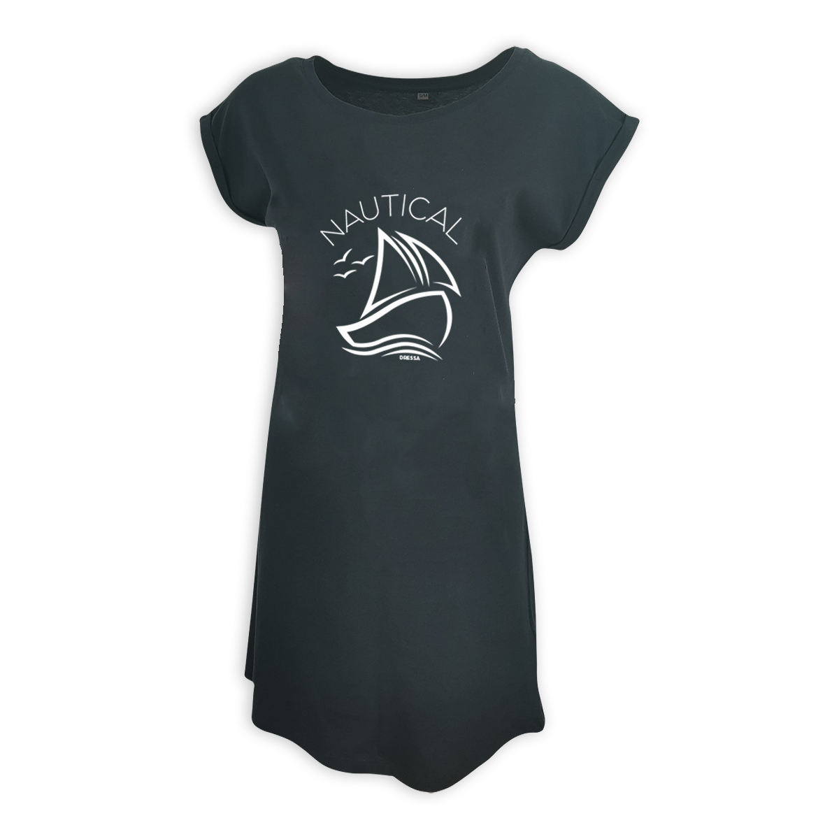 Dressa Nautical hajó mintás pamut pólóruha – sötétkék színben tökéletes viselet lehet hálószobába, vagy strandra. Komfortos szabása és könnyed, szellős anyaga maximális kényelmet ad. Elöl divatos hajó minta van rajta, ami fiatalos megjelenést ad. Széles nyakkivágása miatt könnyen lehet belebújni, vagy kibújni belőle. Strandruhaként és hálóruhaként is viselheted.