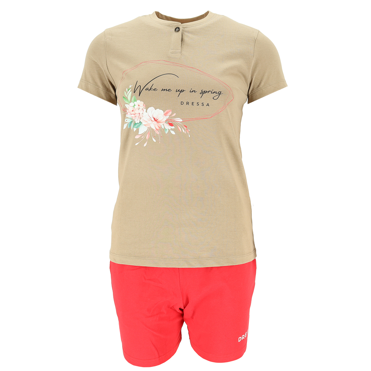 Dressa női pamut rövid ujjú pizsama – bézs és piros