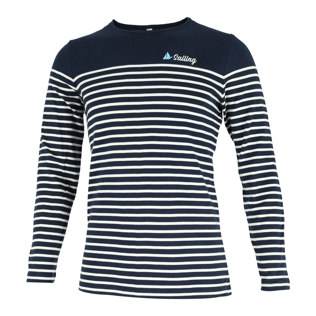 Dressa Sailing csíkos hosszú ujjú pamut férfi kötött póló – kék