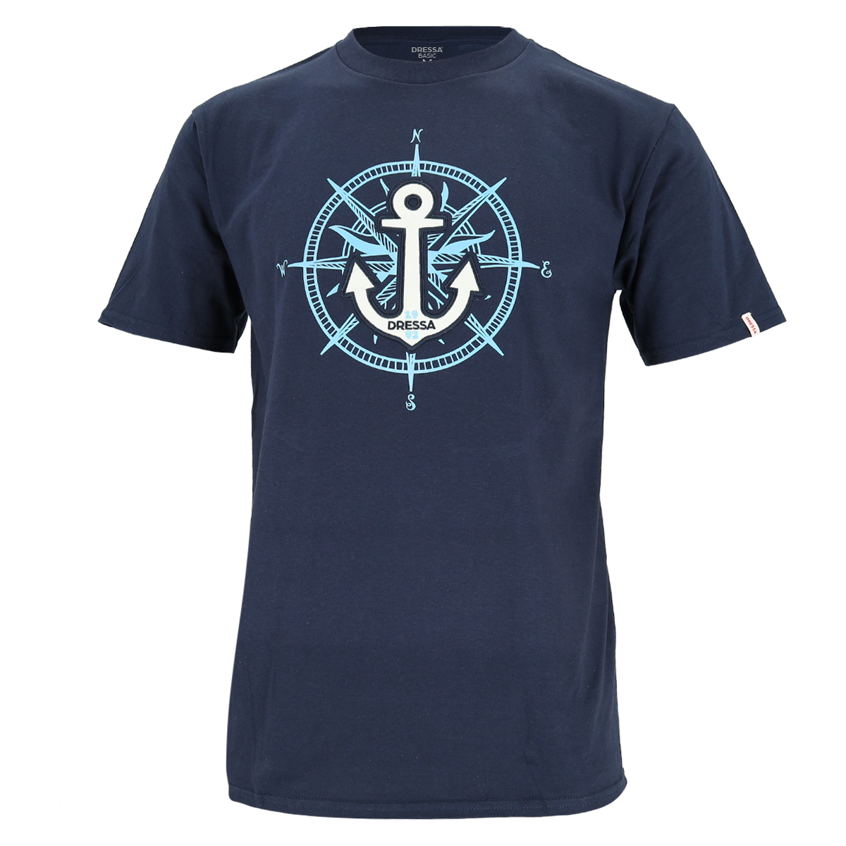 Dressa Sailing hímzett horgony mintás környakú rövid ujjú pamut póló – sötétkék színben stílusos és egyedi, tökéletes választás azoknak, akik szeretik az elegáns és sportos megjelenést egyben. A pamut anyag garantálja a kiváló minőséget és a kellemes tapintást, valamint lehetővé teszi a bőr szellőzését és a komfortos viseletet egész nap. Sötétkék színével azonnal felhívja magára a figyelmet, frissítő és vibráló szín, amely tökéletesen kiegészíti a nyári ruhatárat.