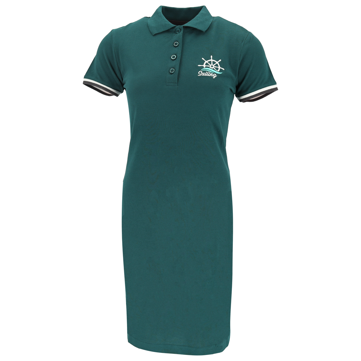 Dressa Sailing Premium galléros pamut hosszú pólóruha – petrolkék