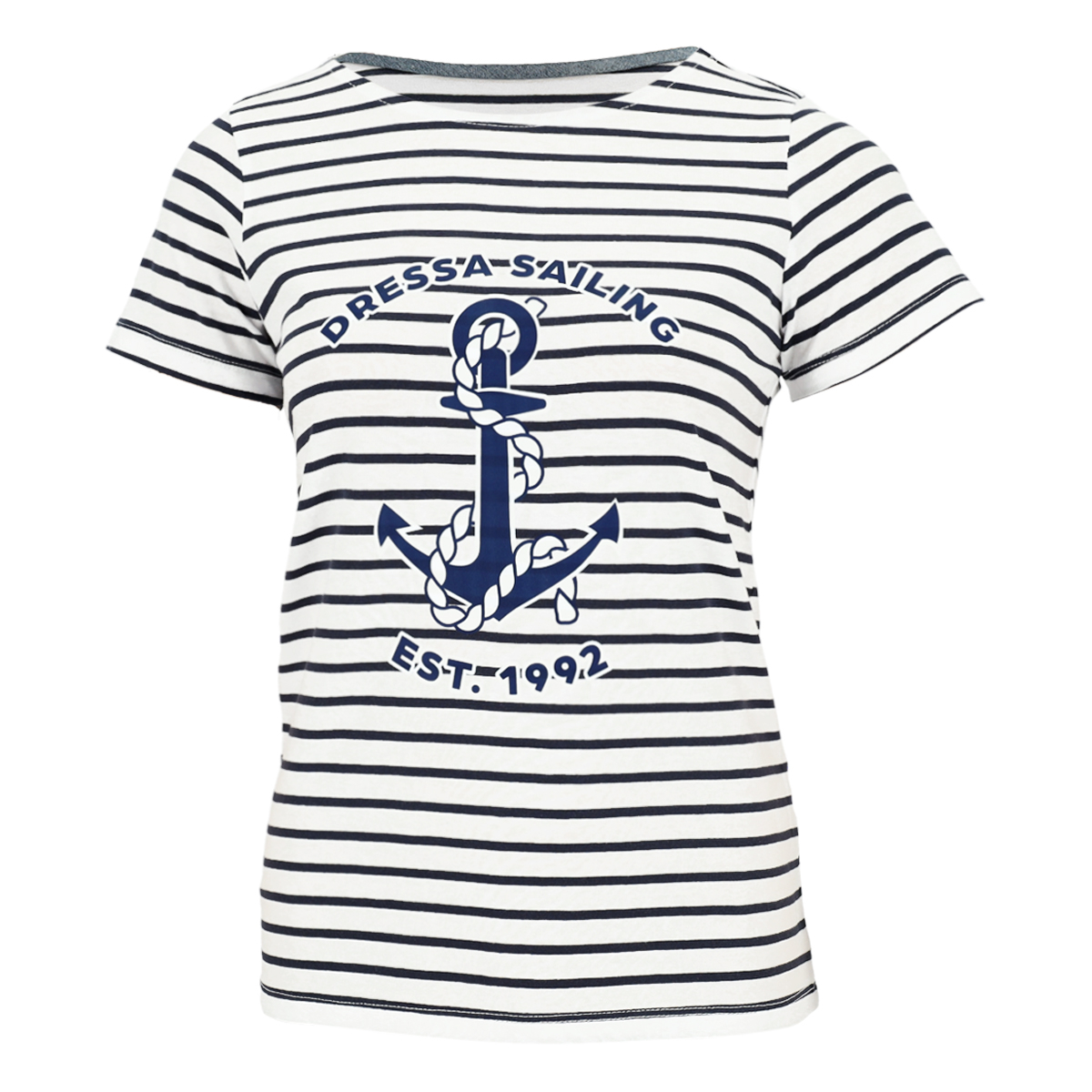 Dressa Sailor csíkos horgony mintás rövid ujjú női pamut póló – fehér