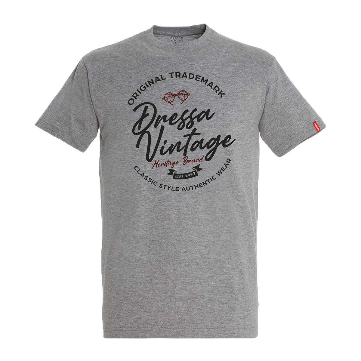 Dressa Vintage Classic feliratos környakú rövid ujjú pamut póló – szürke