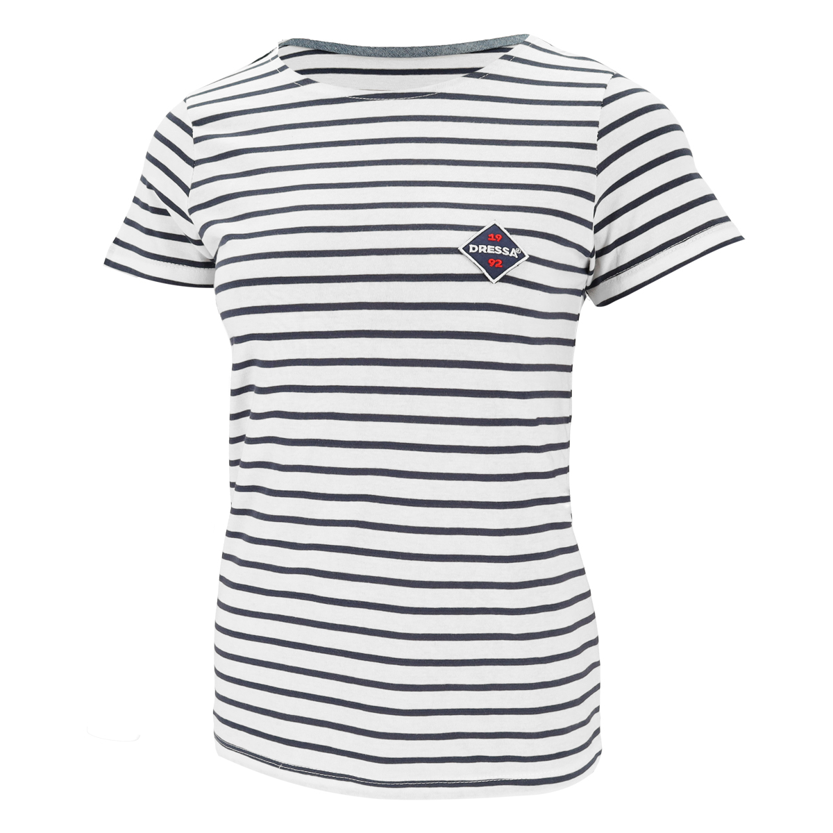 Dressa Vintage csíkos rövid ujjú női pamut póló – fehér