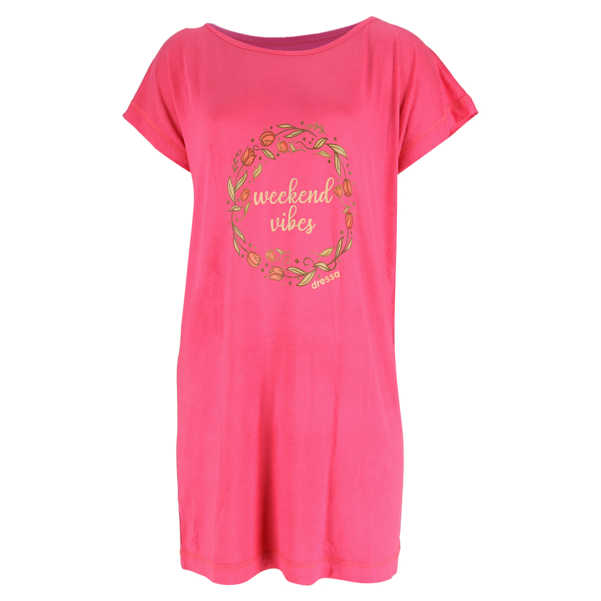 Dressa Weekend Vibes virágmintás hálóruha – rózsaszínben tökéletes viselet lehet a hálószobába. Komfortos szabása és könnyed, szellős anyaga maximális kényelmet ad. Elöl egy trendi minta van rajta, ami fiatalos megjelenést kölcsönöz a viselője számára. Széles nyakkivágása miatt könnyen lehet belebújni, vagy kibújni belőle. A mintája nem csak a jókedvet fokozza reggelente, hanem stílusosan is kiemeli a Dressa Home hálóruha egyediségét.