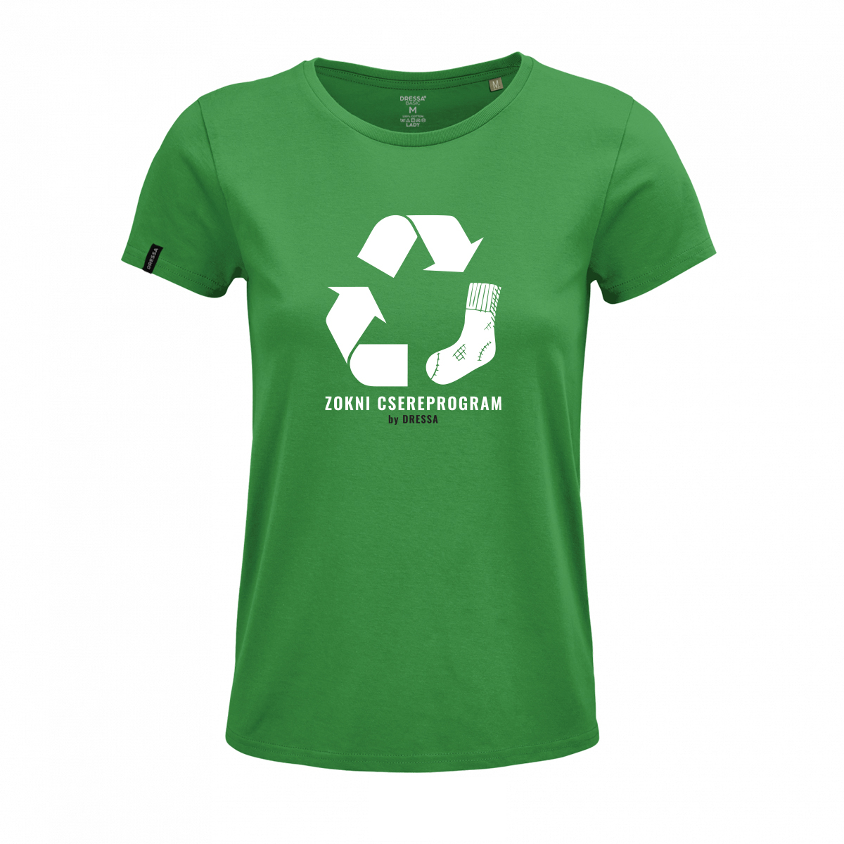 Dressa Zokni Csereprogram feliratos női környakú rövid ujjú biopamut póló – zöld